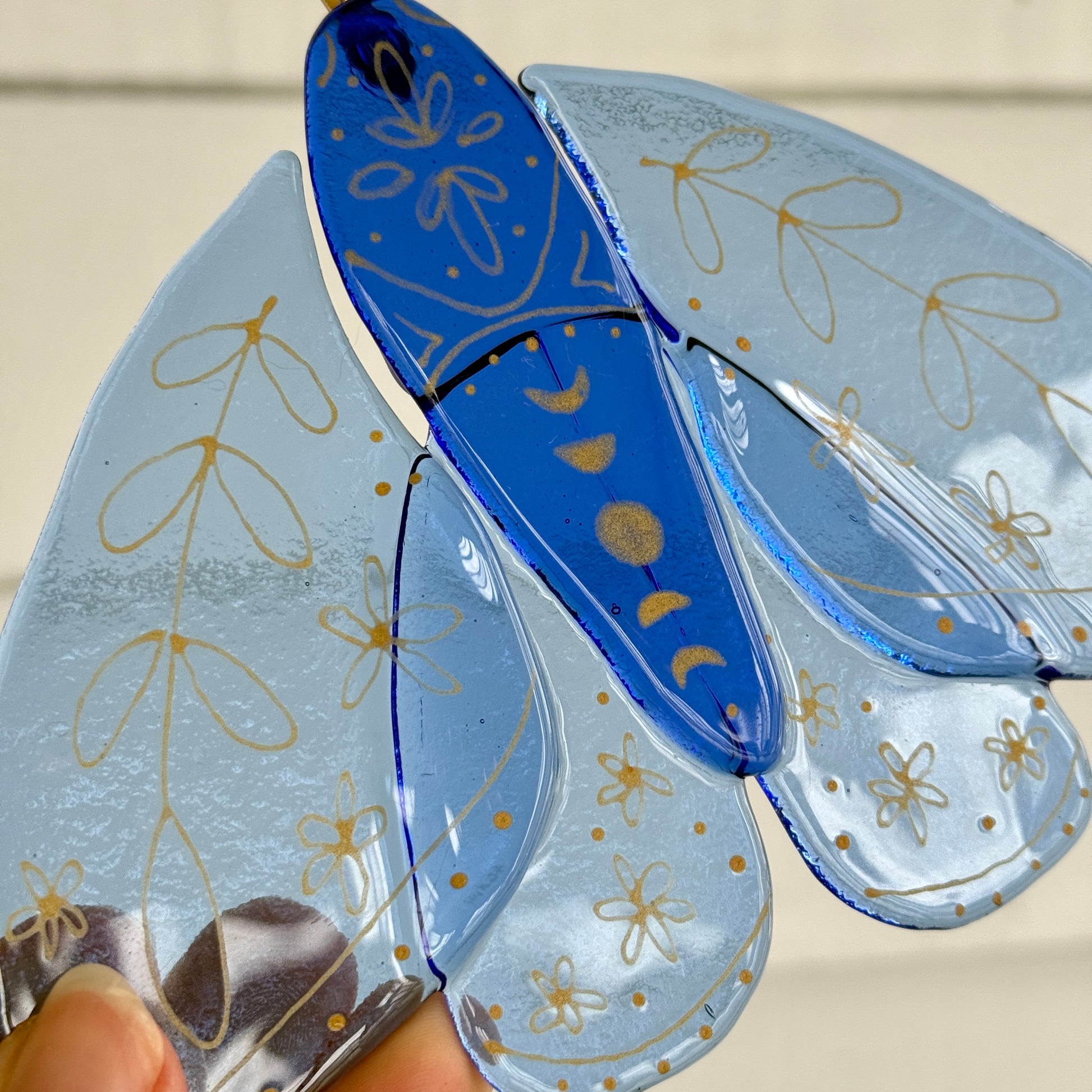 All glass pieces hand crafted by me in my small glass studio in Buffalo, NY. I used a lot of tools passed down from my grandparents and great grandparents along with a small annealing kiln passed down from my great aunt.