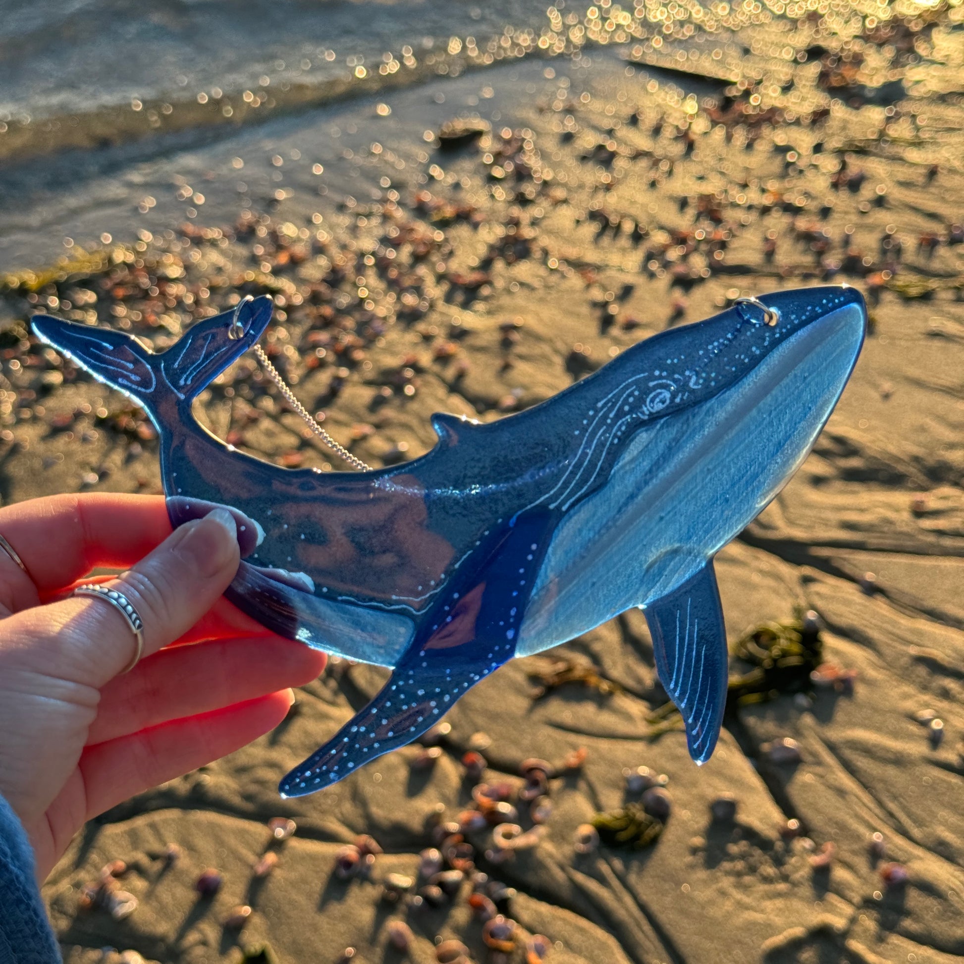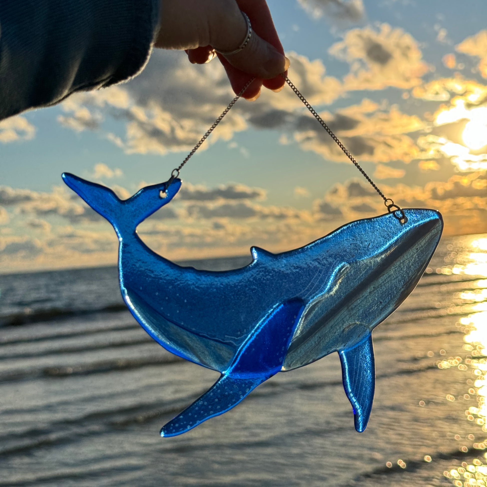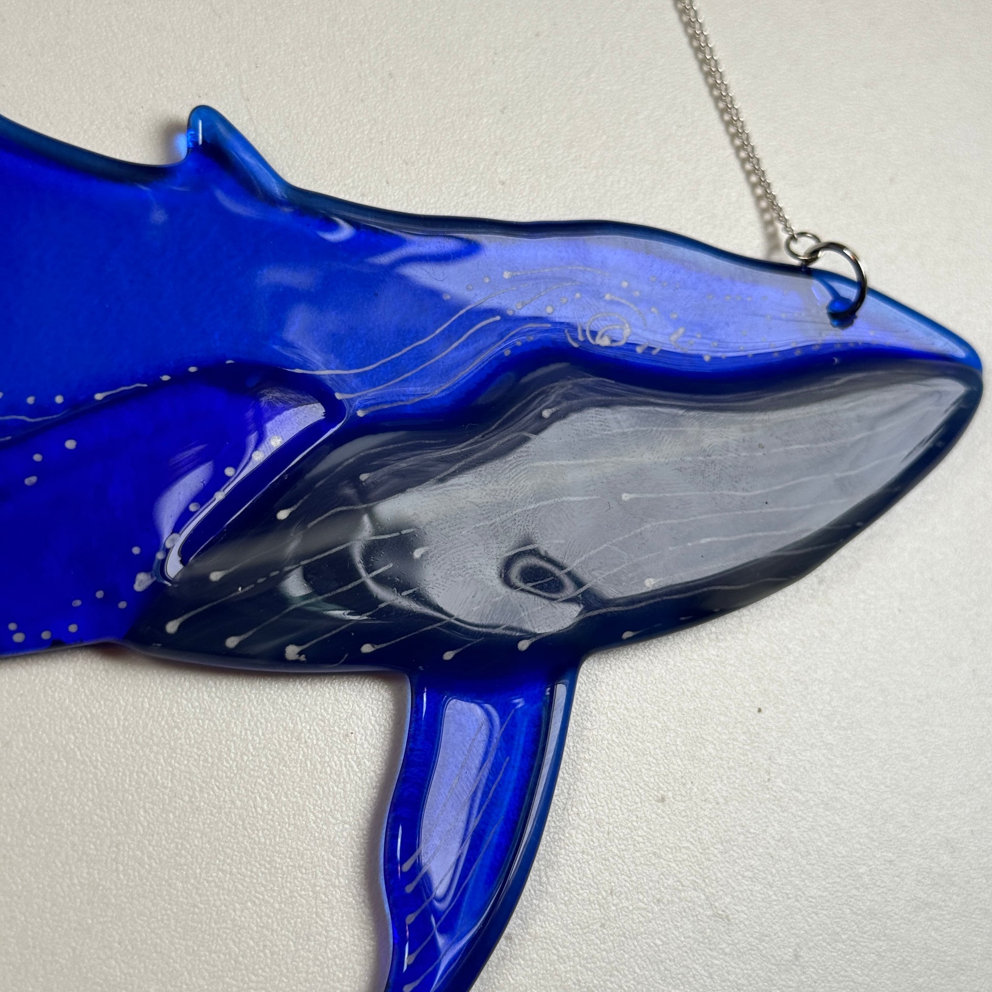 Humpback whale handmade from fused glass.