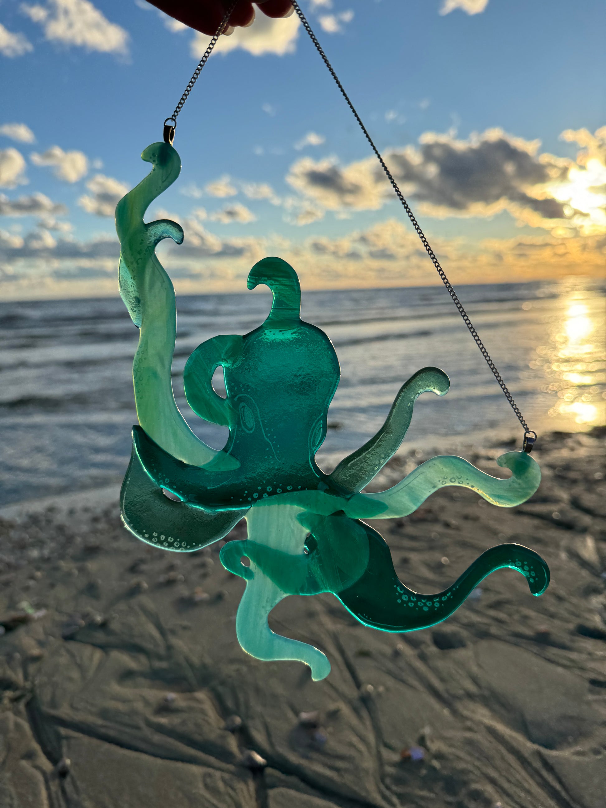 Each is handmade for you and will be completely unique, especially painted details and tentacle placement. *Color of each piece may be switched, but will feature glass in stock images.