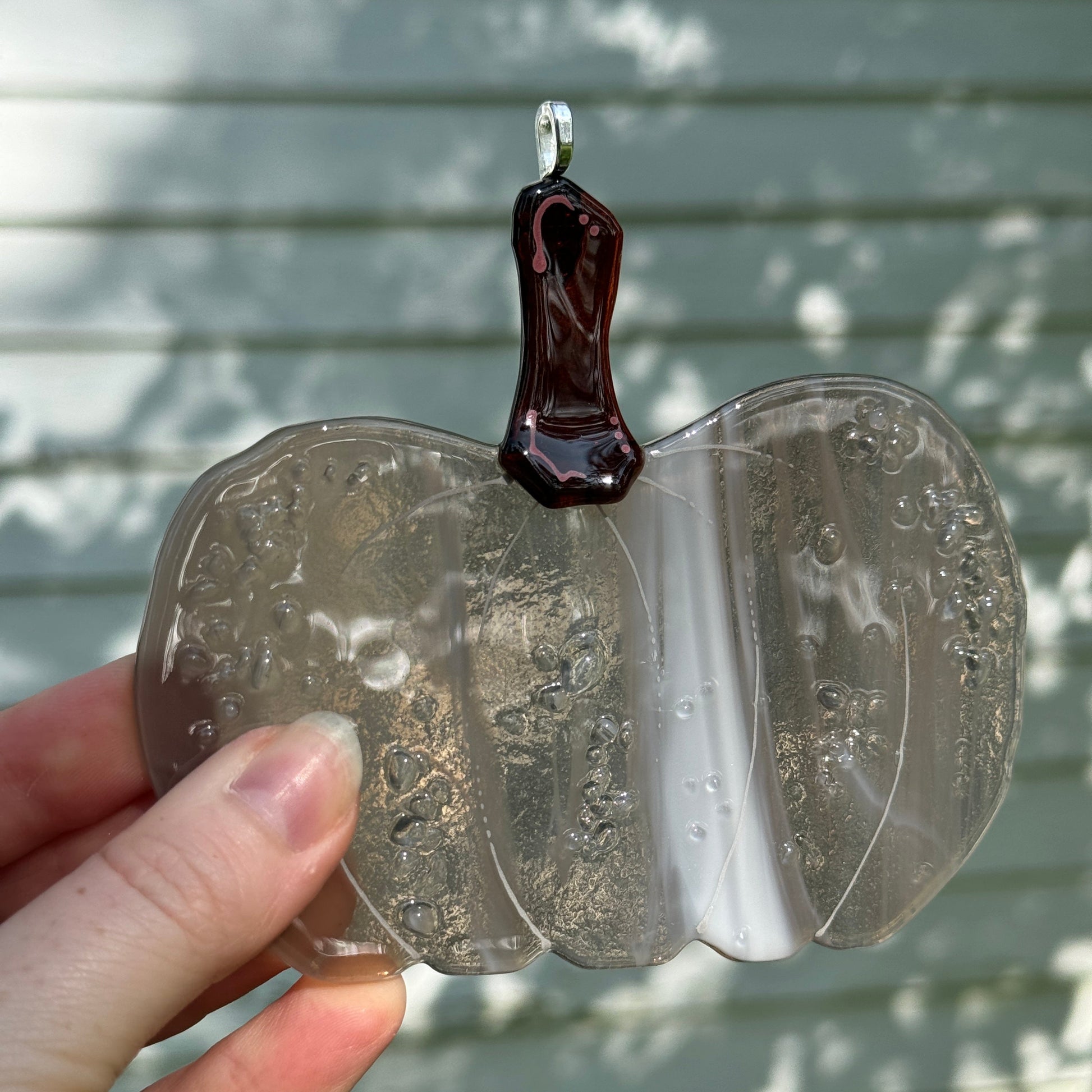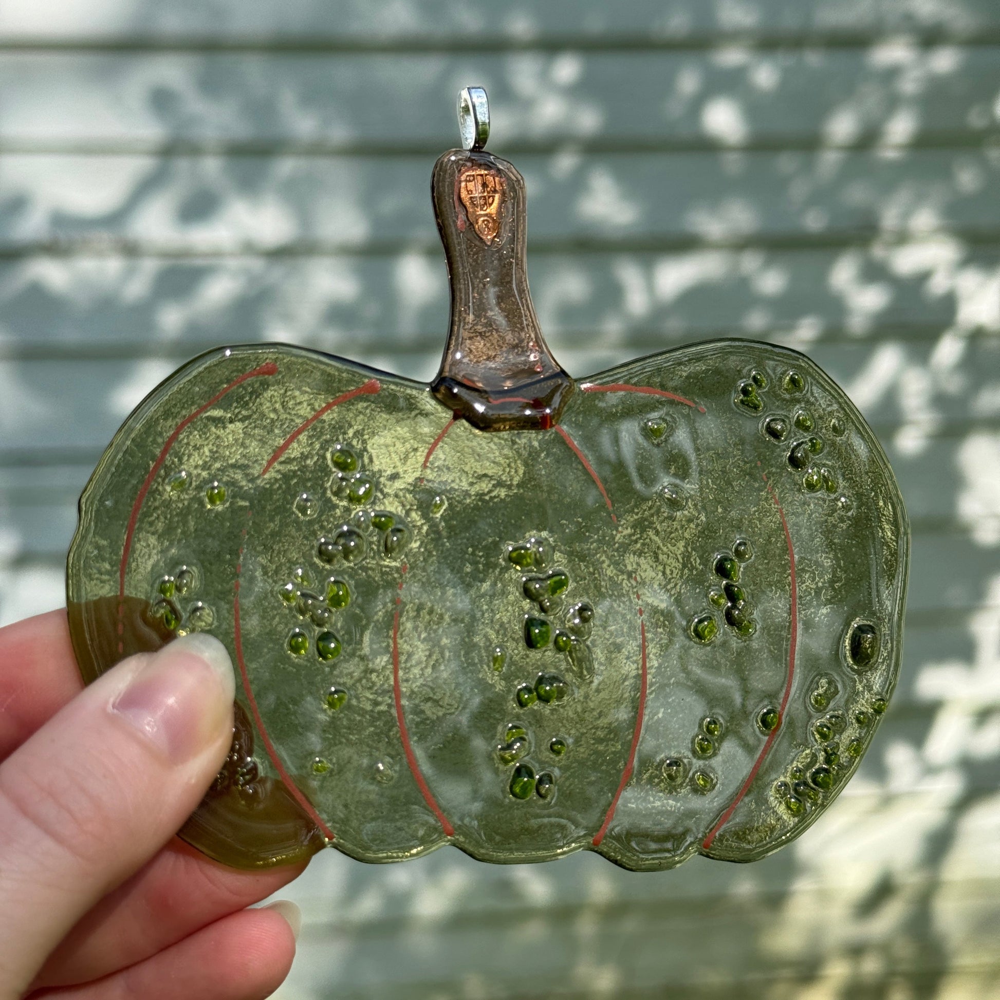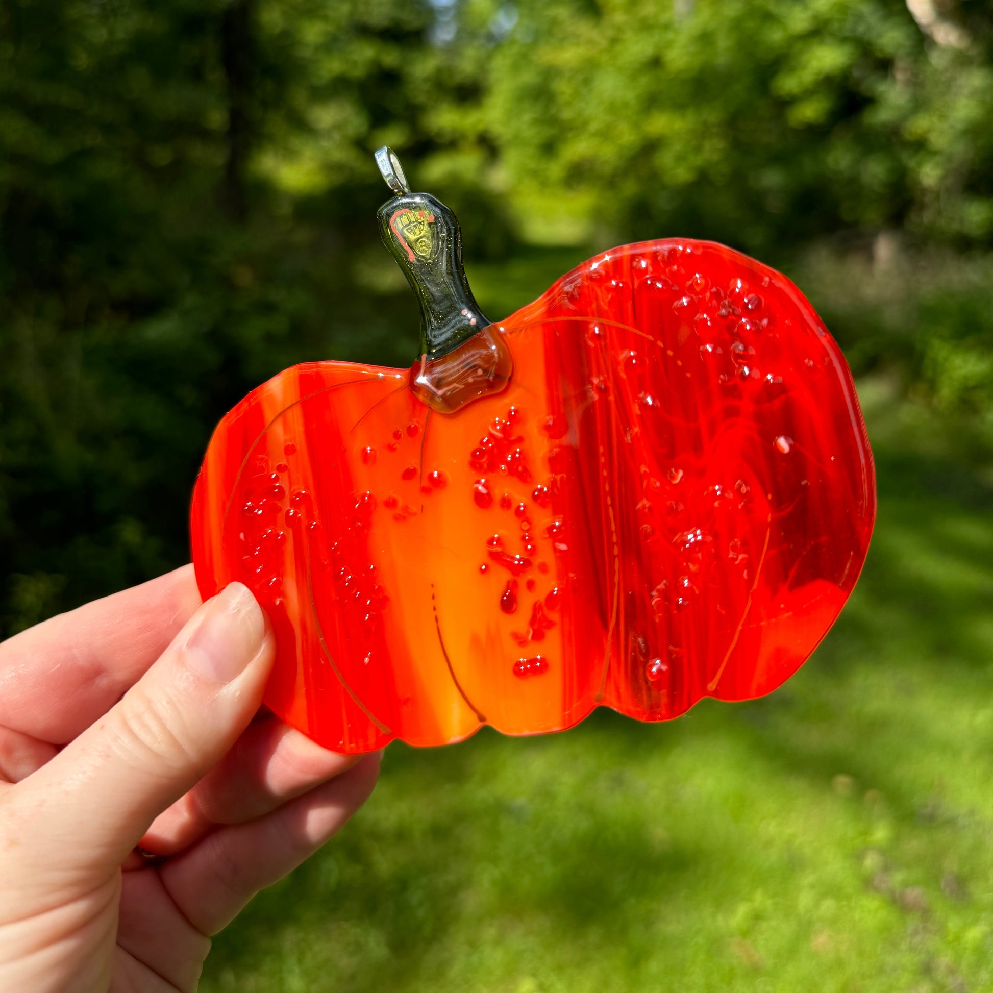 Handmade glass pumpkin window hangers.