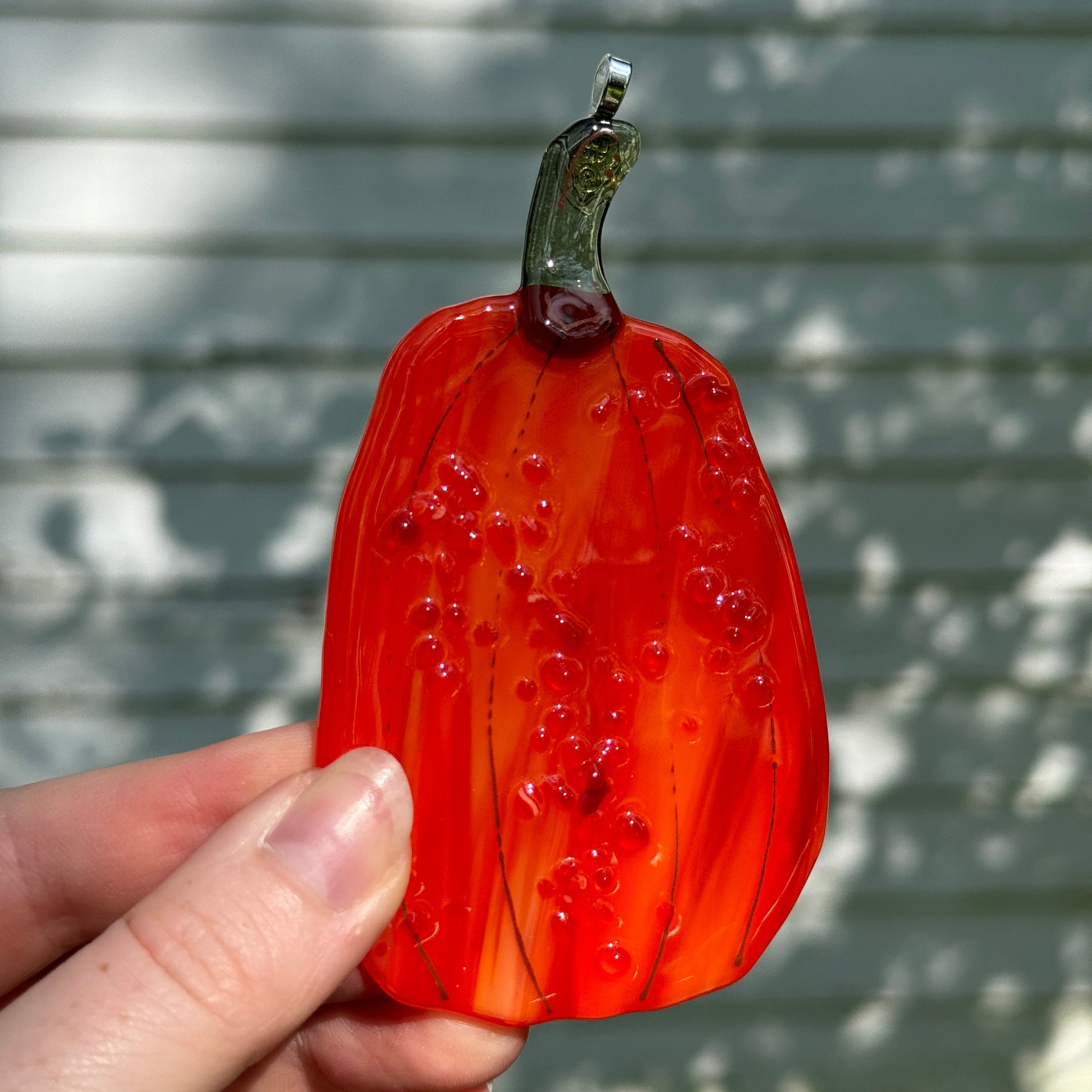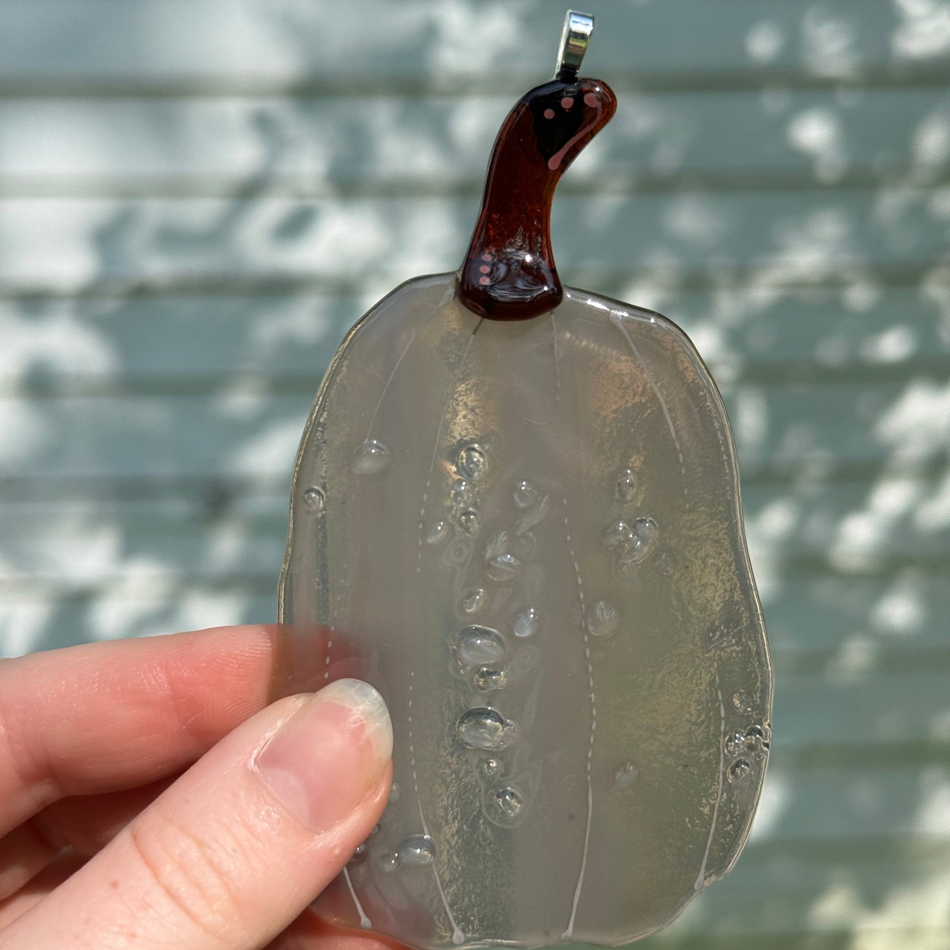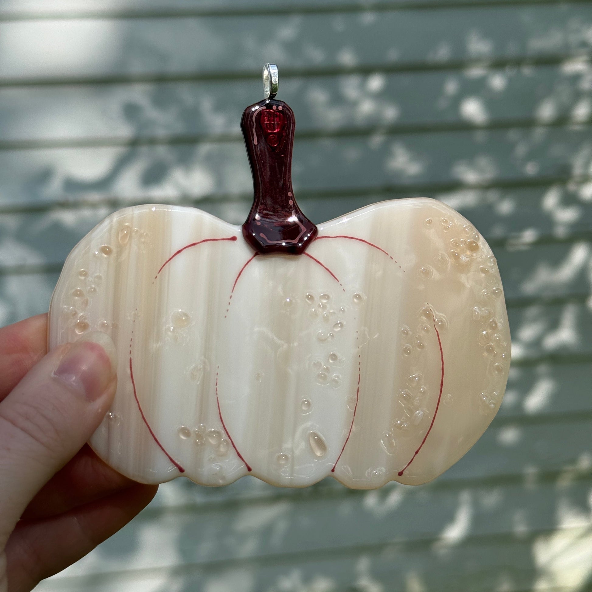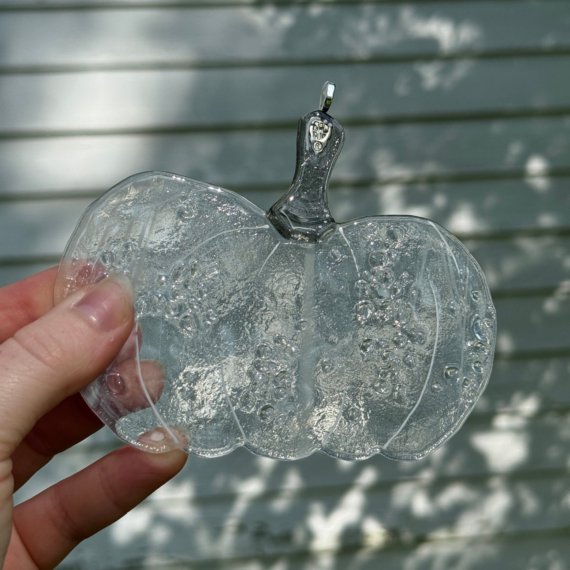 Handmade glass pumpkin window hangers.