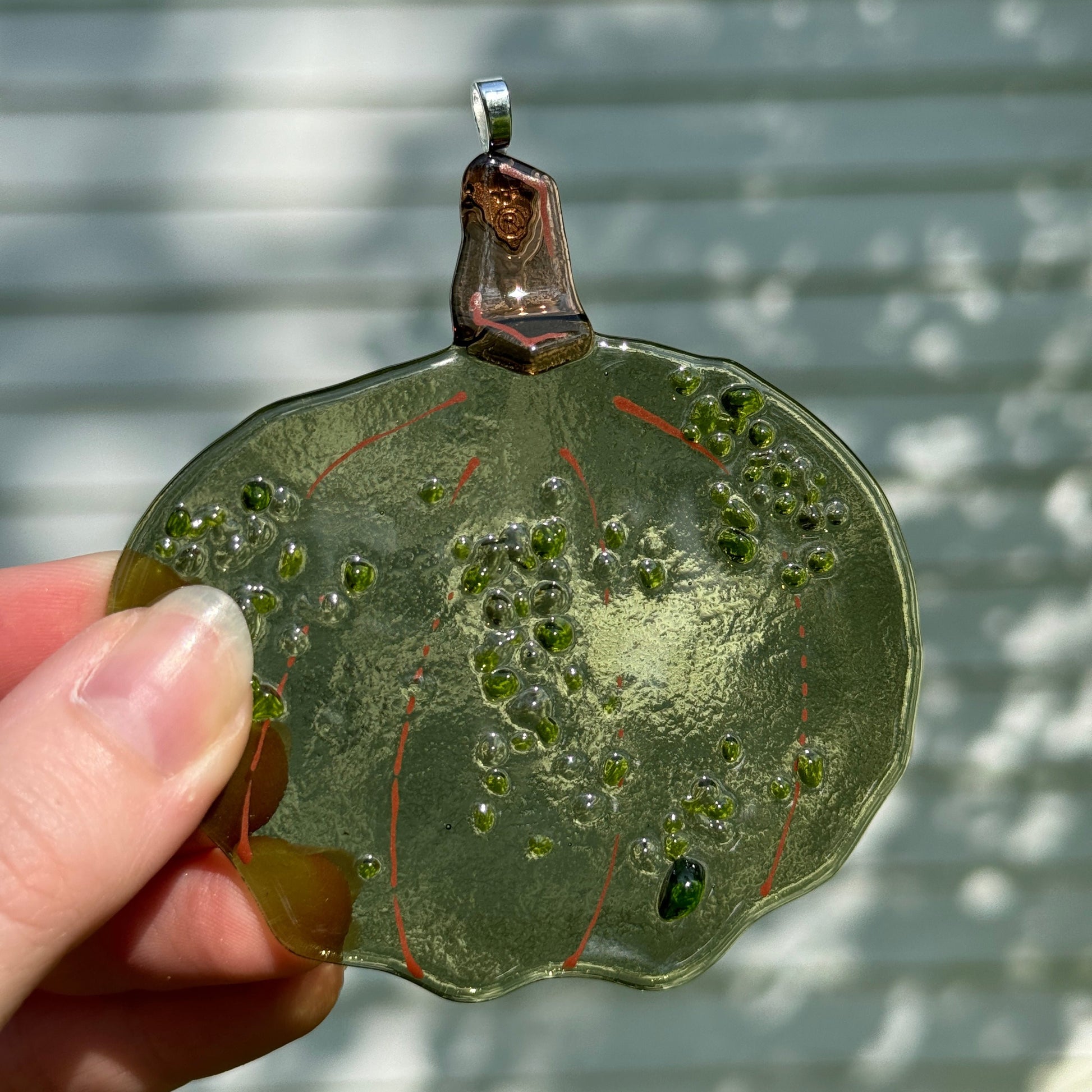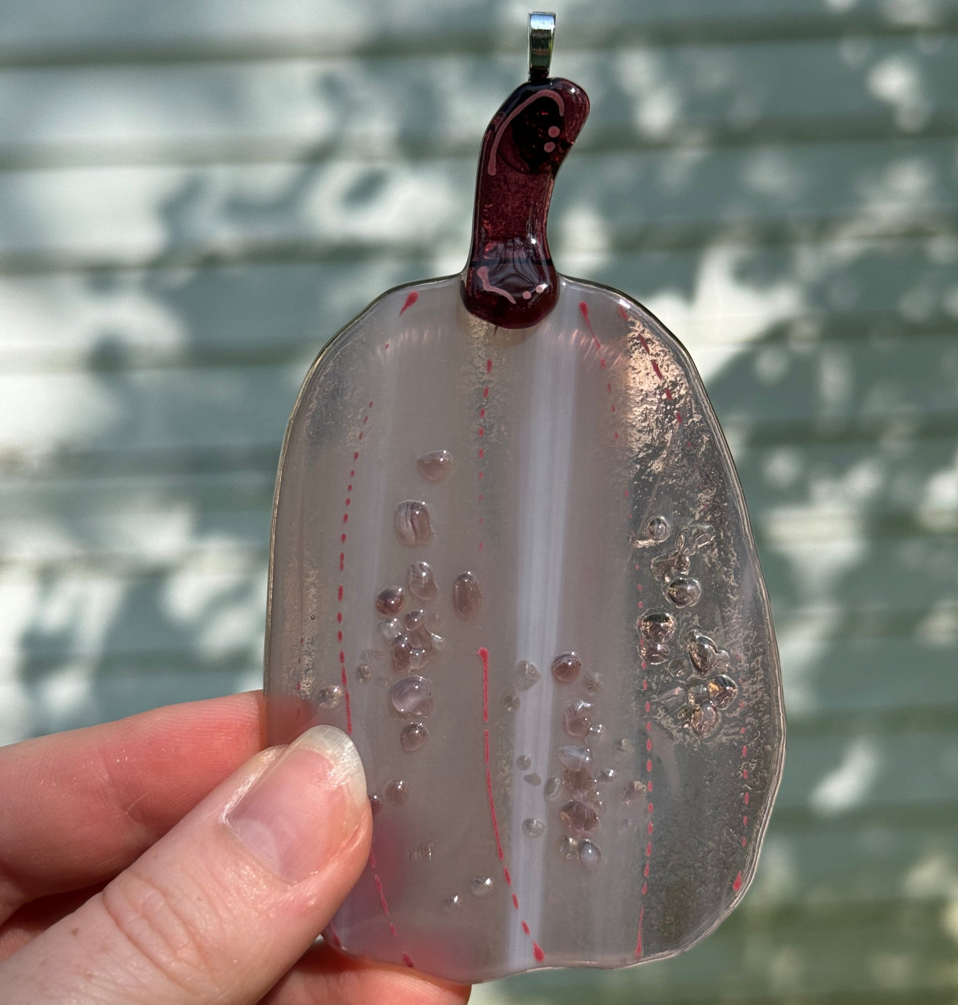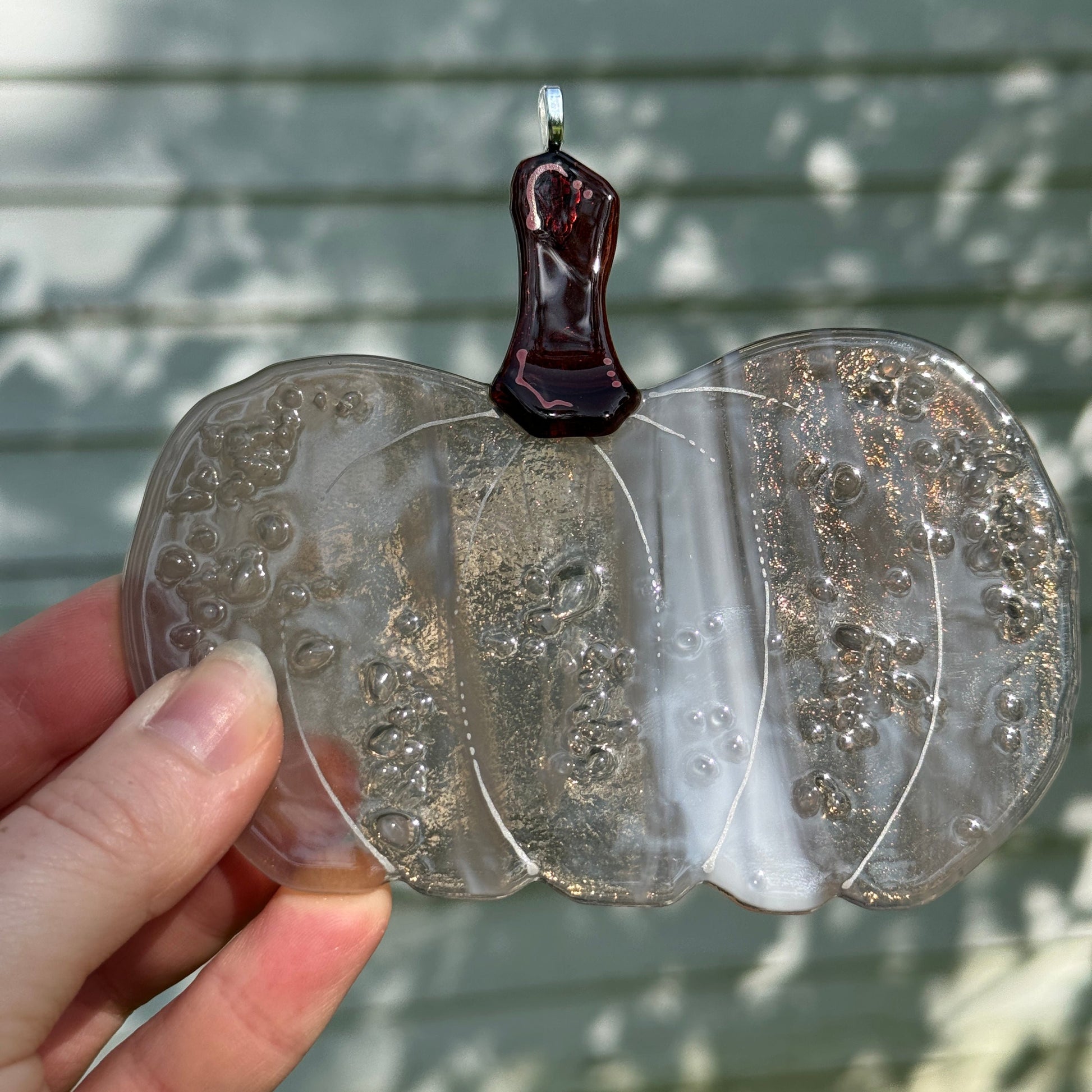Small bumps added with tiny pieces of glass add texture, dimension, and catch the sunlight!
